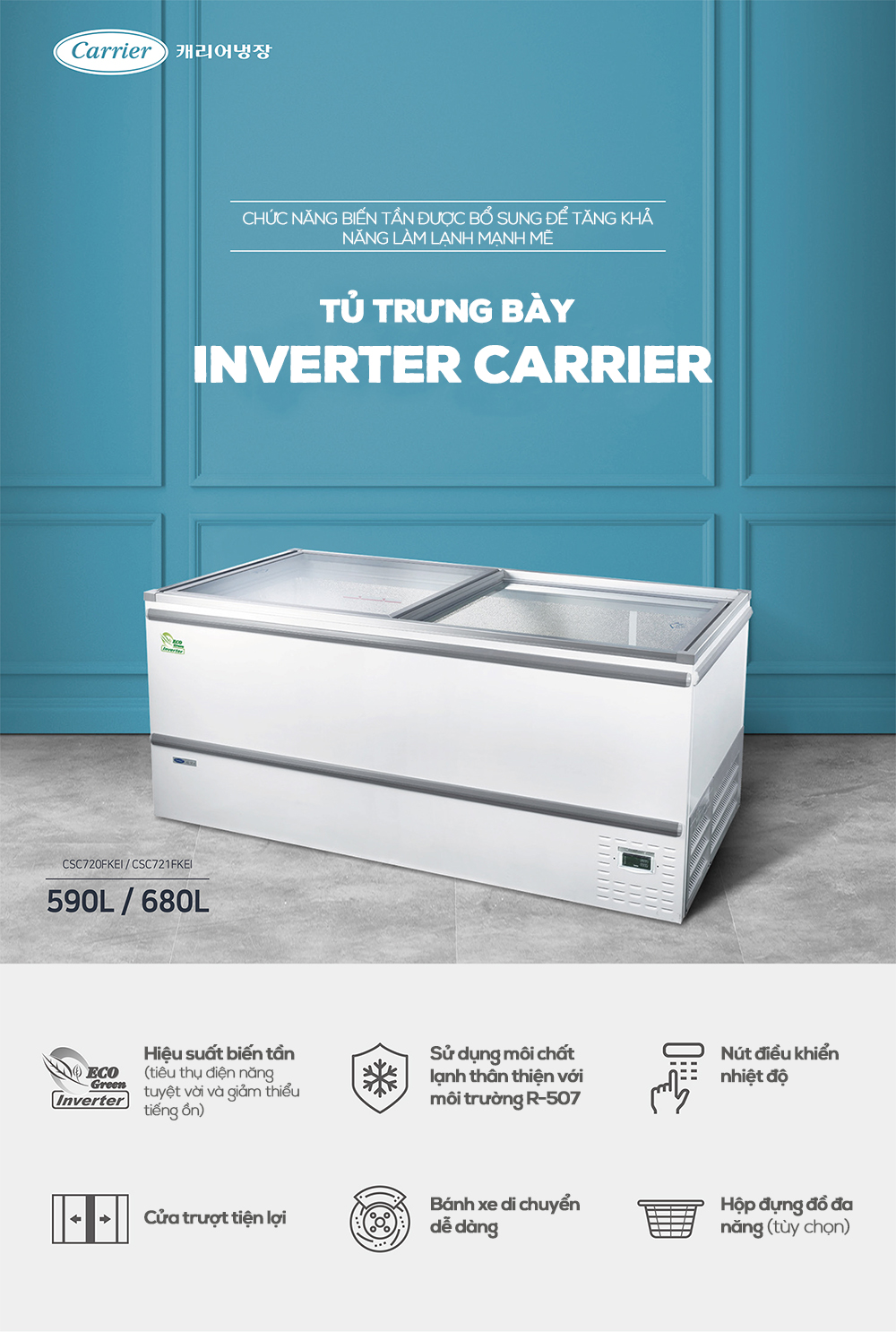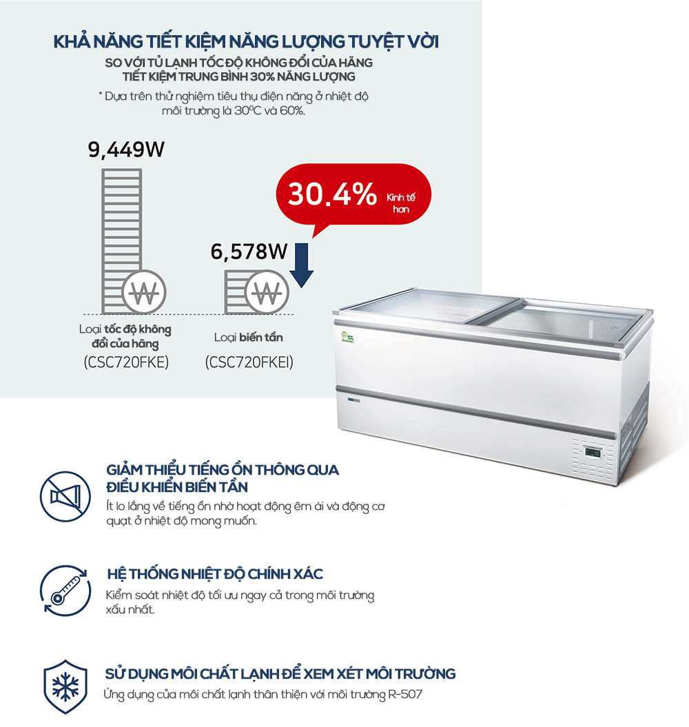 * Kiểu : Tủ cấp đông phẳng biến tần (cửa kính)