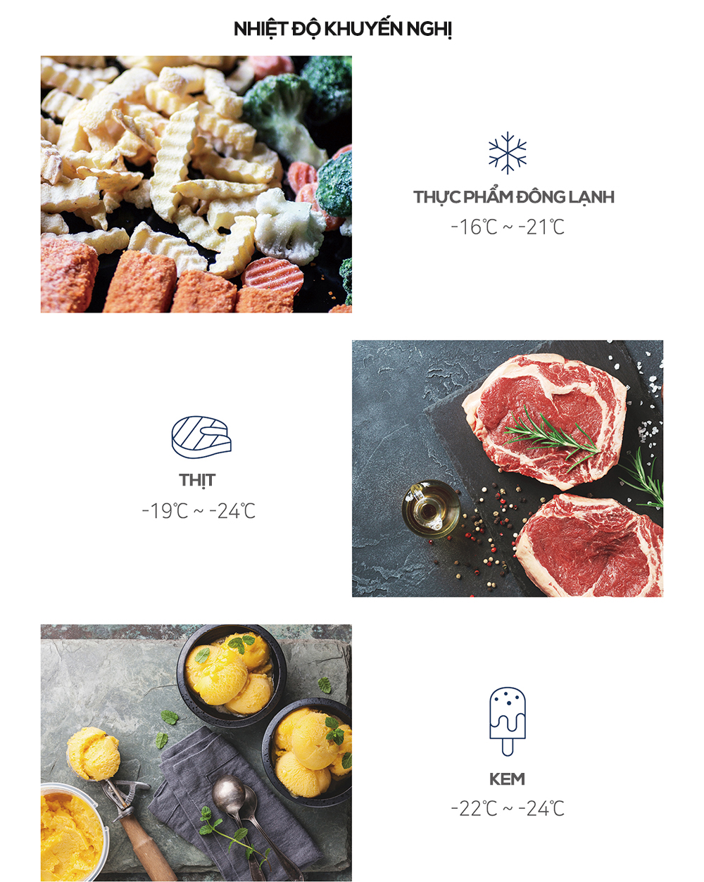 * Nhiệt độ : -24 ℃ ~ -18 ℃