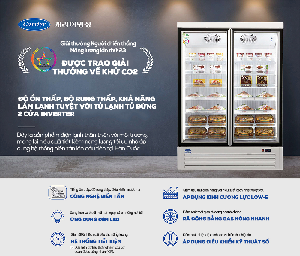 * Kiểu : Tủ lạnh trưng bày 2 cửa Inverter